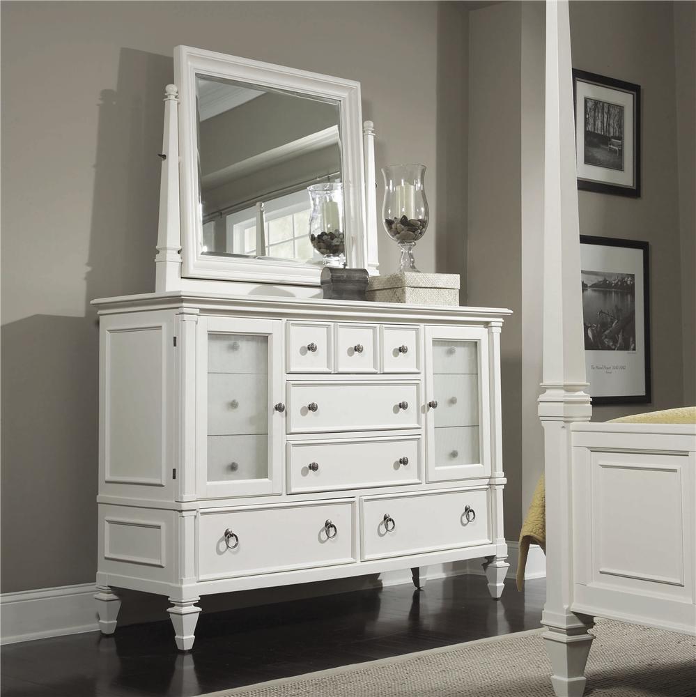 Ashby features a patina white finish with contrasting fired nickel hardware and reeded glass. Use either the Landscape or Tilt. The Ashby Bedroom Collection by Magnussen features a patina white finish with contrasting fired nickel hardware and reeded glass.