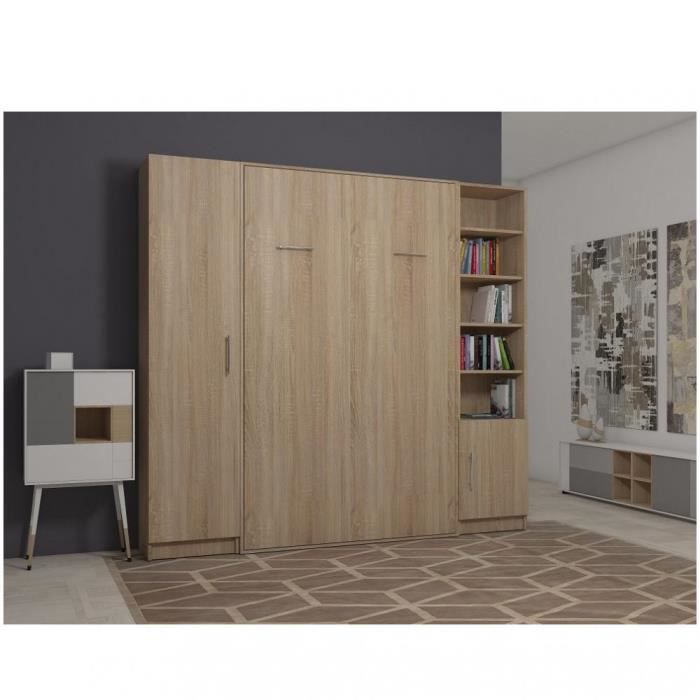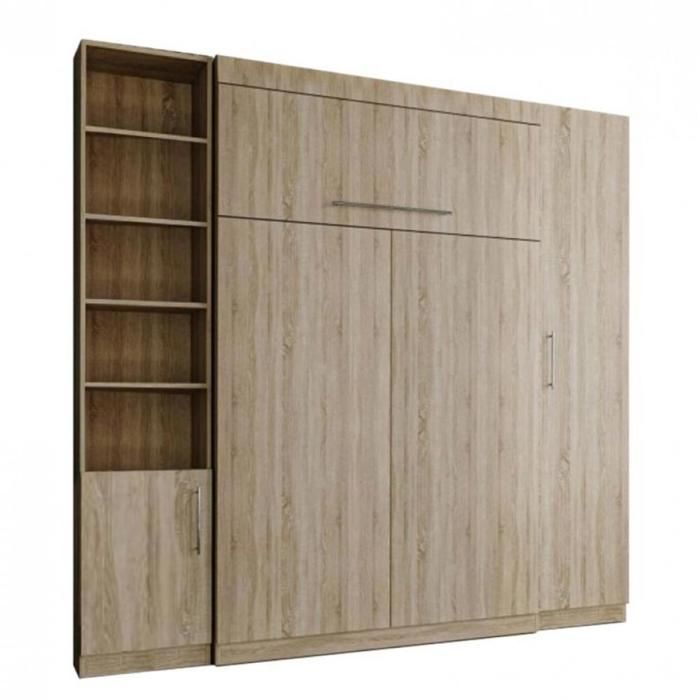 Composition Armoire Lit Escamotable Smart V2 Chene Naturel Couchage 160 X 200 Cm Colonne Armoire Et Bibliotheque Natural Bois Inside Cdiscount Maison
